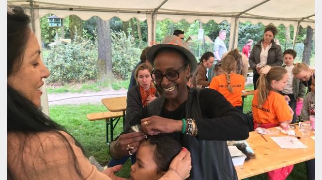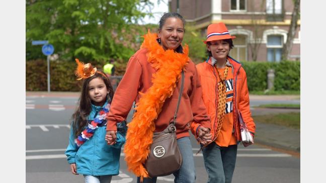 Koningsdag Oosterbeek:Op weg naar de activiteiten op Sportpark ‘Hartenstein’.