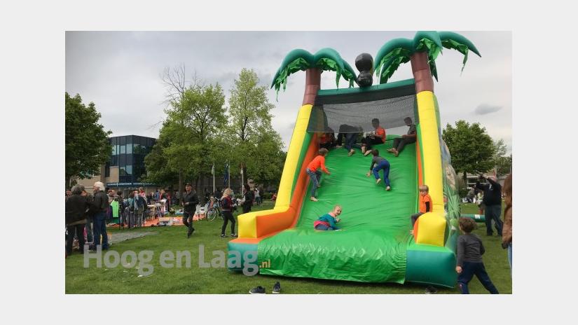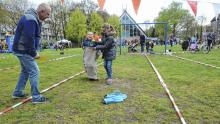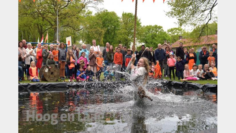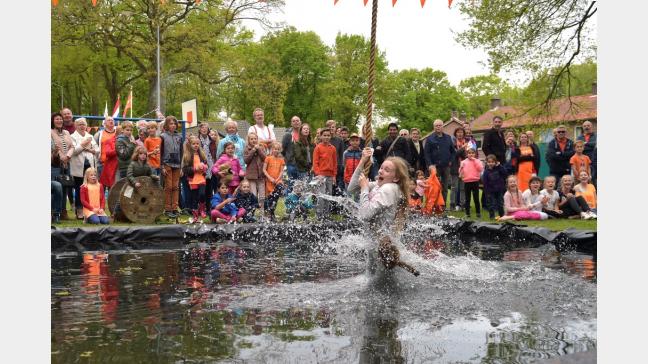 Koningsdag Wolfheze:Veel hilariteit om de deelnemers aan de ’Wolvensprong’.