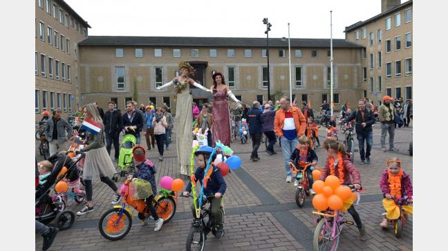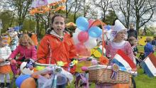 Koningsdag Wolfheze:Rondrit door het dorp samen met de kinderen.