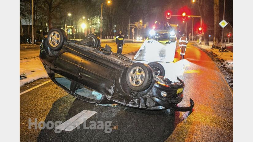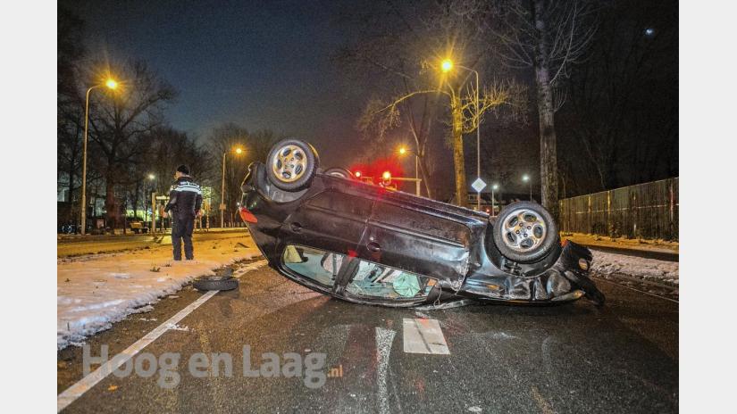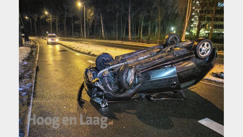 WAGENINGEN Op de Nijenoord Allee in Wageningen was woensdag vroeg in de ochtend een auto over de kop geslagen. Dit gebeurde in een bocht tussen de Rooseveltweg en de Bornsesteeg.