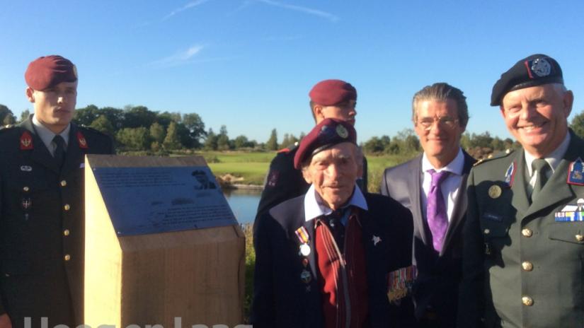 HEELSUM Tom Hicks keerde afgelopen zaterdag terug naar Dropzone X, de plek waar hij tijdens Operatie Market Garden landde. De veteraan (100) onthulde een plaquette op het terrein, waar nu Golfclub Heelsum zetelt.