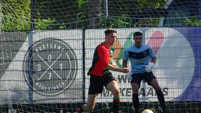 FRENKIE Het duurde maar tien minuten voor de doelpuntenproductie weer lekker op gang kwam. Jasper Slenters (door de WAVV-aanhang al liefkozend hun 'Frenkie de Jong genoemd') soleerde als een hinde door de defensie van de gasten, was niet zelfzuchtig en presenteerde Duraku een niet te missen kans. Hij stelde 'de aangever' niet teleur (4-0). Binnen de minuut konden de handen van de supporters opnieuw op elkaar, met dank aan 'de man met de precieze voorzet', Kevin van Woerkom en de jubilerende spits Mortier, die zijn honderdste duel lardeerde met een heuse hattrick (5-0).Daarna leek de gasten toch de eretreffer te worden gegund. WAVV-doelman Jeffrey Rutten kwam wat te druistig uit zijn doel en vloerde de Varsseveld-aanvaller. Scheidsrechter Kalifa kon niet anders dan een strafschop geven. Maar Rutten herstelde zijn fout hoogstpersoonlijk, door met een prima reflex de elfmetertrap van Lucas Breukelaar uit zijn doel te ranselen.