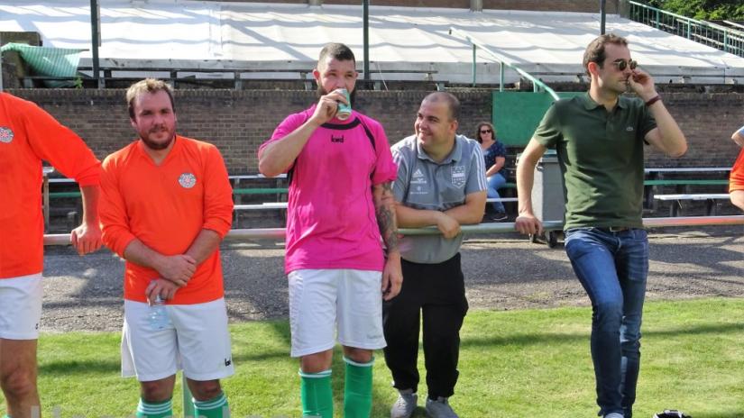 DERDE HELFT Nadat ook de wedstrijd daadwerkelijk was geëindigd ging het in colonne terug naar Sportpark De Zoom, waar onder het genot van een hapje en een drankje 'de derde helft' nog 'even' gespeeld werd. Het zal nog lang gezellig geweest zijn en wie weet zal ook nu 'de onvoorspelbare leider' het laatst zijn vertrokken. Een ding zal daarbij zeker zijn. Het was een dag die hij zeker nooit meer zal vergeten.