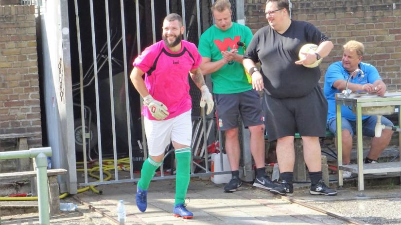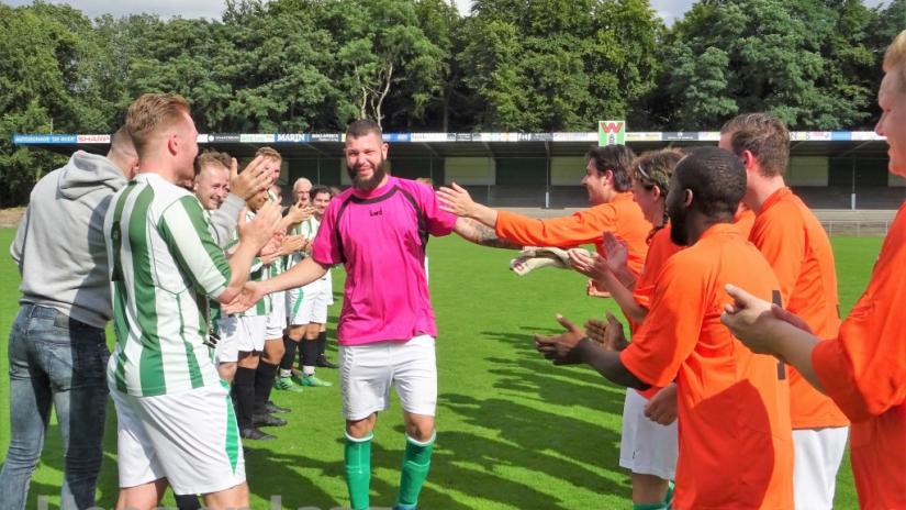 WAGENINGEN 'Een onvoorspelbare leider vertrekt', stond er als titel van het speciaal voor WVV Wageningen doelman Roy Rijsemus gemaakte programmaboekje voor een bijzonder duel, dat ter gelegenheid van zijn afscheid zaterdagmiddag op de legendarische Wageningse Berg werd gespeeld. 'Zijn' club wilde het door de doelman aangekondigde afscheid niet geruisloos voorbij laten gaan en organiseerde een afscheid in stijl, waar het 'Team Roy', bestaande uit familieleden, oud-ploeggenoten en voetbalvrienden het opnam tegen het eerste team van WVV Wageningen, het team waar Rijsemus jarenlang de niet weg te denken doelman was. Het werd een duel 'met een lach en een traan', ingrediënten die de hoofdpersoon zo karakteristiek kenmerken.